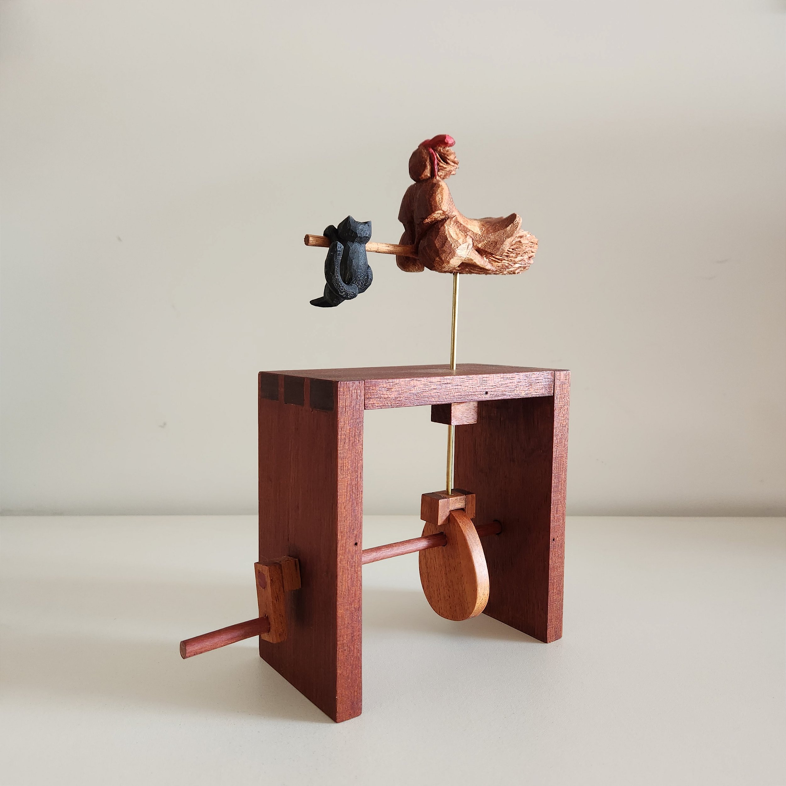 madeira de demolição (espécie não identificada proveniente de uma gaveta), de cedro-rosa, de caxeta e de eucalipto, latão